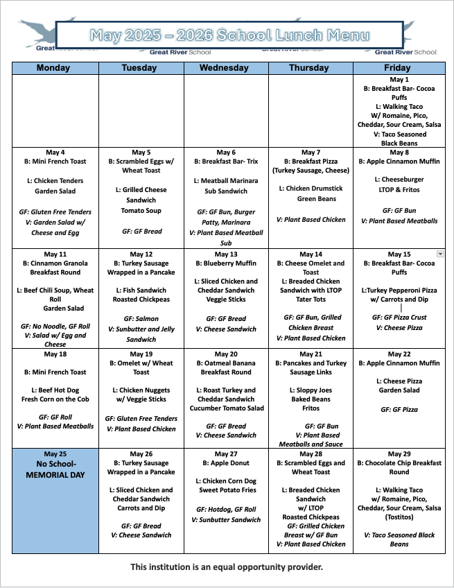Questions can be directed to lunch@greatriverschool.org.